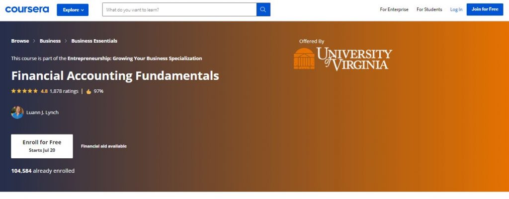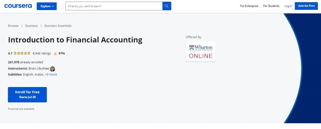 Educators of the Brigham Young University teach this course. They have long years of involvement in the field. If you already know accounting essentials yet might want to dive considerably more profound into specific angles, this course is the thing that you need. However, if you have no prior knowledge, you can still join and gain so much from this course. This is on the grounds that it will show some rudimentary ideas of the area. Students will figure out how to plan fiscal reports, which will assist them with applying what they have learned. This course comes with a ton of real-life models. Monetary reports of corporate monsters, for example, Microsoft or Walmart will be examined and talked about. Those are among the best accessible models for learning and applying the main perspectives and ideas. Simultaneously, some more modest organizations will be examined as well. These models will tell students the best way to begin new ventures. The length of the program is of around 7-8 hours.