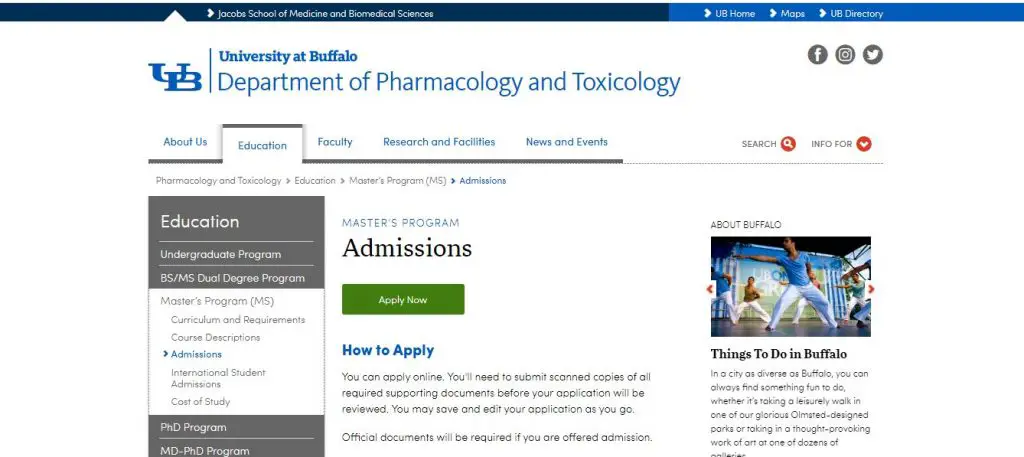 5. MS in Pharmacology by University at Buffalo, The State University of New York