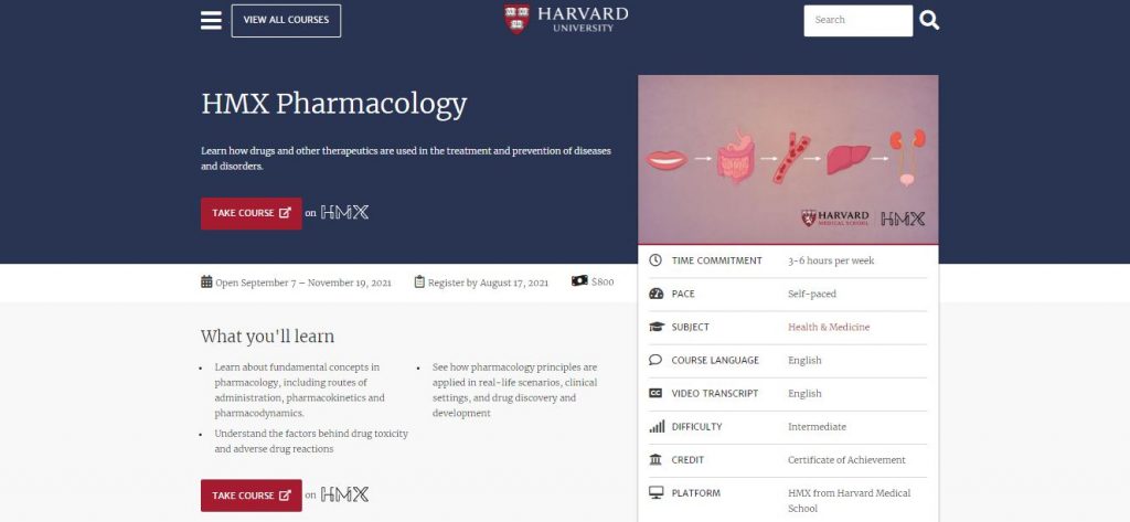 2. HMX Pharmacology Course by Harvard Medical School