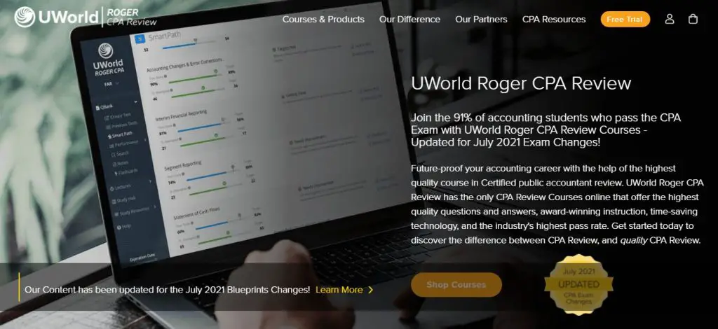 UWorld Roger CPA Review is one of the most effective and efficient CPA Exam Review courses online. You can join the 91% of accounting students who have passed the CPA Exam with UWorld Roger CPA Review Courses. Future-proof your accounting career with the help of one of the best quality courses in CPA Exam preparation. This website has the only CPA Review Courses that offer great quality questions and answers, time-saving technology, award-winning instruction, and the industry’s highest pass rate. With UWorld’s program, you will master difficult accounting topics on a deeper level so that you can understand the material, ensuring you excel, not just on the exam but beyond in your career. Their exam prep courses provide the motivation you need now with effective and engaging learning techniques that will systematically prepare you for CPA Exam success.