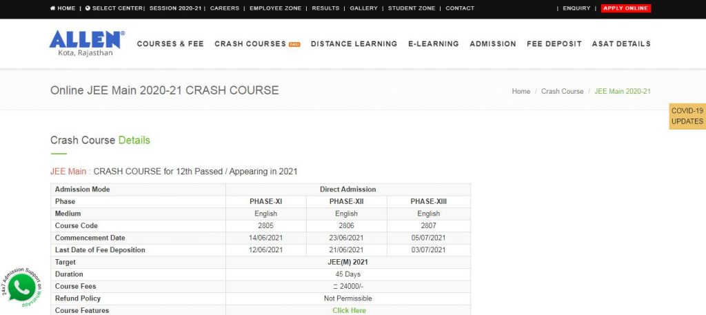 2. Online JEE Main 2020-21 Crash Course by ALLEN