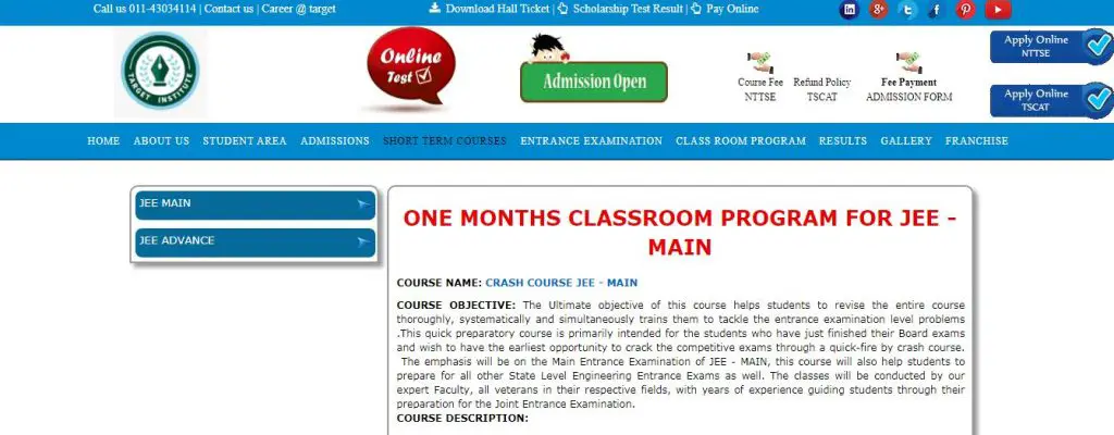 The course providers follow a systematic and thorough revision of the whole syllabus and provide examination-centered training to tackle the entrance questions successfully. The students who have just completed the 12th Board examination would have to just brush up the topics and make the concepts thorough once again with precision. The importance is given to the Main Entrance Examination of JEE – MAIN, but the coaching is apt for other engineering entrance exams as well which are conducted state-wide. The educators are well fit for the training and are experts in their corresponding field along with the good sort of experience in guiding lots of students for years leading them to victory.