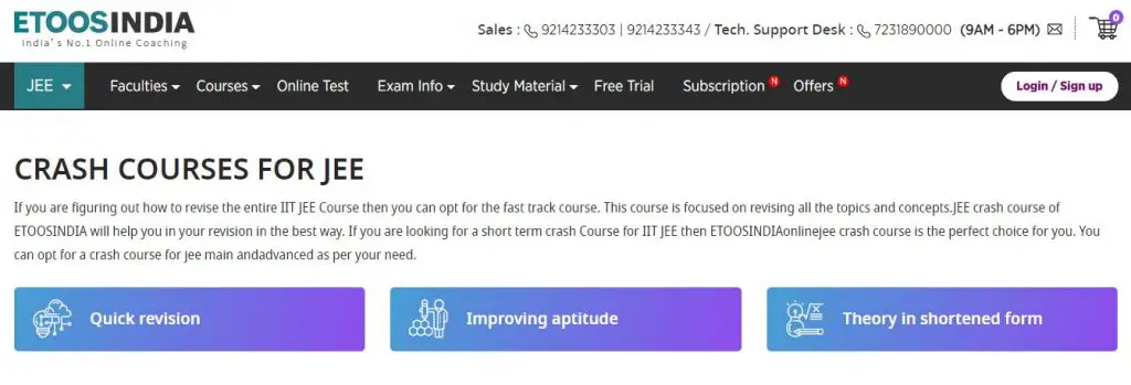 4. Crash Courses for JEE by ETOOSINDIA