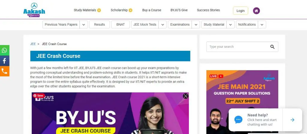 The crash course by Vedantu is basically building up a strong information foundation for Math, Physics, and Chemistry. The revision for all the topics coming under each subject is taken care of with utmost care with the help of specialized tutors and excellent syllabus design. The way to manage time and the provision of instant doubt solving are also made available by the providers. The teachers are the best JEE coaches. Several sample tests are made available for the students for practice.