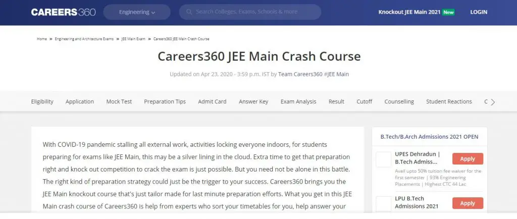 6. JEE Main Crash Course by Careers360