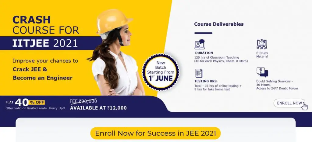 The course duration is 6 to 7 weeks and can be taken by students who have completed their 12th and those who are preparing for the exam. The way of conceptualizing is through video lessons, which makes the topic thorough enough rather than just remember it. Sample question papers are provided with respect to each of the topics and concepts. The questions are put to practice several times so as to improve on the weaker areas. Time management techniques, tricks to enhance speed, confidence in facing the examination, and planning of the topics to be learned are taken care of. The student has to just concentrate on his studies and utilize the very moment of time to the fullest. Practice, practice, and more practice is the only way to succeed in such competitive exams.