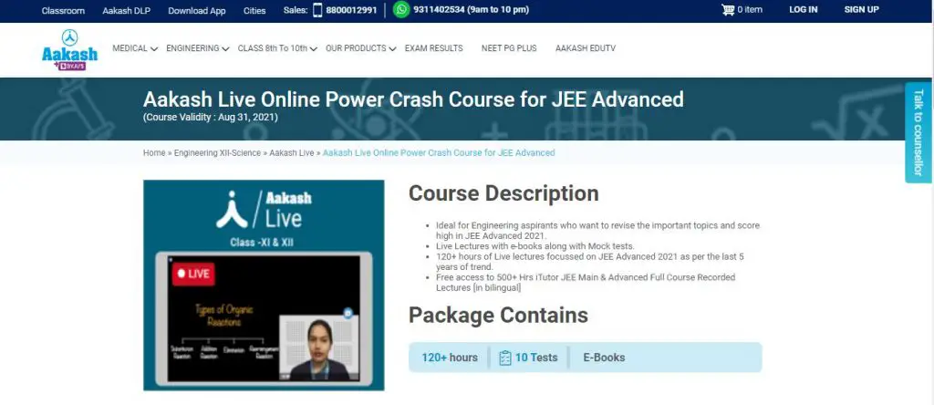 10. Akash Live Online Power Crash Course for JEE by Aakash