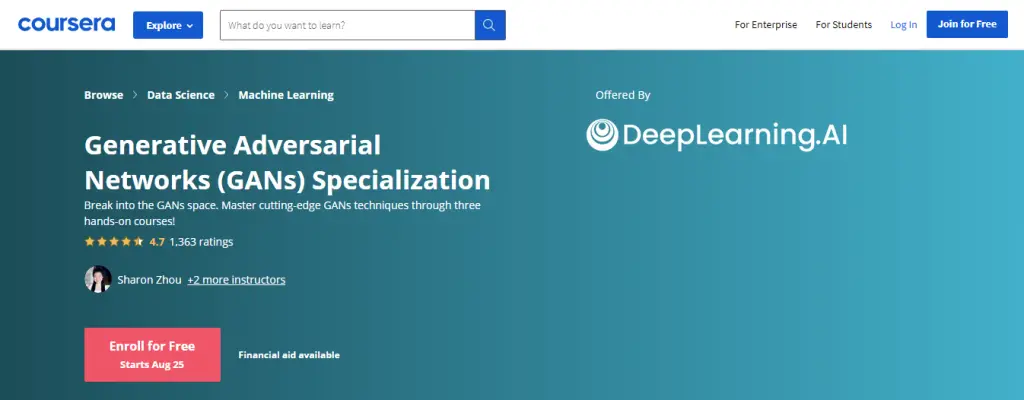 Generative Adversarial Networks (GANs) Specialization is yet another program offered by Deeplearning.AI. instead of learning overall AI, it is better to stick to a particular topic so that you can master it. Generative Adversarial Networks (GANs) are powerful machine learning models capable of generating a realistic image, video, and voice outputs.