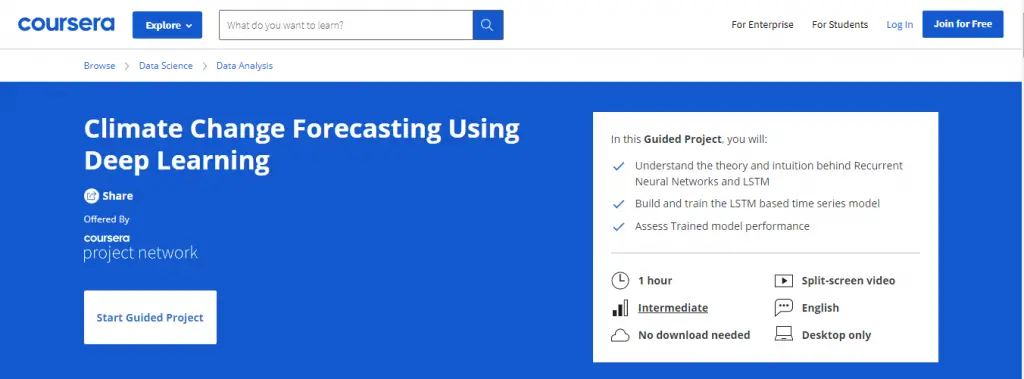 Well, I know you should have kinda got fed up by now seeing the same deep learning courses. Now I have suggested something different from the previous courses. Climate Change Forecasting Using Deep Learning is not a course precisely. It is a project-based program that would help you improve your analytical skills.