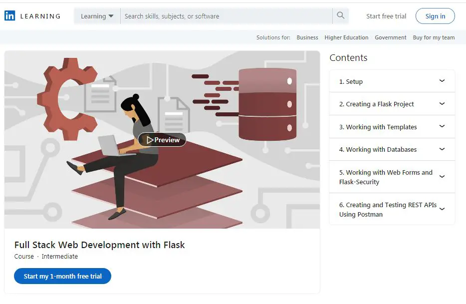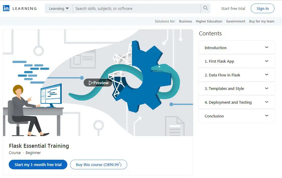 Another popular course on our list by LinkedIn is the fit for individuals willing to become professional web developers. This course will cover areas of Full Stack development and building web applications successfully with the help of Python and Flask. Apart from learning about web developments and applications, you will also learn to work with templates and lastly, you will be able to create and test REST APIs. This course has everything to fulfill your requirements to work as a professional.