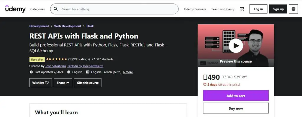 If you already have enough knowledge about Flask and its functions and are willing to improve your performance, then this is the best and accurate course for you offered by Udemy. The course will begin with basic introductions of Python and Flask and then proceed further with REST API development and other Flask extensions.