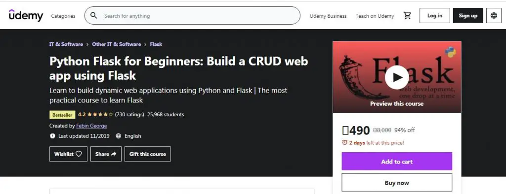 5. Python Flask for Beginners: Build a CRUD Web App Using Flask by Udemy