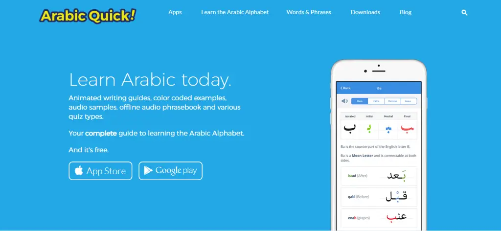 Arabic Quick devotes its text-based tutorials to teach you the Arabic script. It has an attractive, colorful user interface that will give you an understandable formation for your learning and is probably the most complete free guide you will find online. The lessons are devoted to each letter of the alphabet, which are run-down by how they are written at the initial, middle, and last of a word. You’ll find samples and clarifications for different pronunciation regulations, plus mnemonic tools to easily recall how each letter is written. Arabic Quick also assists you to compare variances between similar-looking letters, so you are ready to avoid mixing them. This is a great platform to start or continue your learning of the Arabic script. It can easily be used side by side by other means that teach you conversational Arabic.