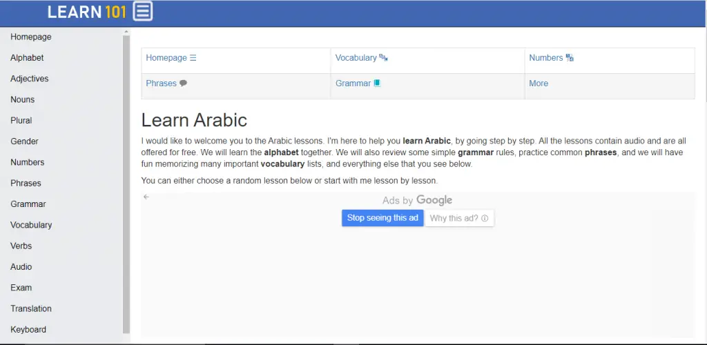 Assuming you need a simple to explore website to compliment your Arabic learning, Learn 101 is by and large what you need. From the highest point of the page, you can work through vocabulary, phrases, grammar, and numbers, or further down the page you can pick things like tests that will give you a different decision test to perceive what your level resembles. What is especially useful with regards to this site is that nearly all that you click on is written in English and Arabic, then, at that point utilizes the Latin letters in order to assist you with articulating better, lastly has an audio document so you can hear how it definitely should be said. In case you’re battling with the grammar of gender in Arabic there is an incredible segment to give you pointers. There is even a console to assist you with evaluating writing in Arabic.