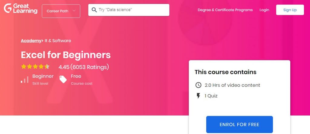 Microsoft Excel is an excellent spreadsheet software depended upon by most industries which act as a powerful tool to analyze the data and to visualize the same. Beginners are often scared or perplexed at how to go on with the course. But the providers are well set to provide you with all the required knowledge and skills to make the most out of Microsoft Excel. You are about to learn the use of formulas for doing intricate calculations for data analysis. You are going to get a detailed idea about the concepts of borders, sorting, and filtering of data through this free online course on Excel.