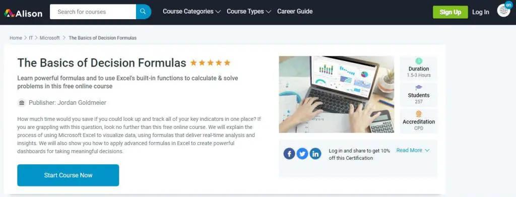 The course is rendered in parts for better and deep understanding. The first part helps to solve most of the questions related to the introduction of spreadsheets, formatting and aligning, advanced cell formatting, addition and subtraction, multiplication and division, and B.O.D.M.A.S. Arranging and rearranging data, reformatting it, and analyzing trends and patterns are also made easy. The course consists of chapters to give a detailed acquaintance with all the above-mentioned areas with precision. The providers have detailed courses for each and every aspect of the software and can be detailed from the given link.