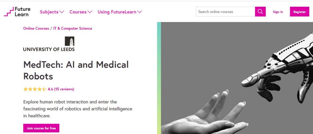 Let us not forget the tremendous advancement in technology over the last decade for the department of medical and health sciences. Machines have been developed by humans that do the job which a human cant do. And a lot of them have resulted in thousands of human lives being saved. This course tells us the interdependency of humans and machines when it comes to healthcare. Artificial Intelligence in Medical healthcare is analyzed as challenges faced are demonstrated and the solutions are figured out. This course helps one to explore the future of robots in the medical department. The course is offered by the University of Leeds on FutureLearn. The course is for 2 weeks with a 5-hour weekly study. You can join the course for free.