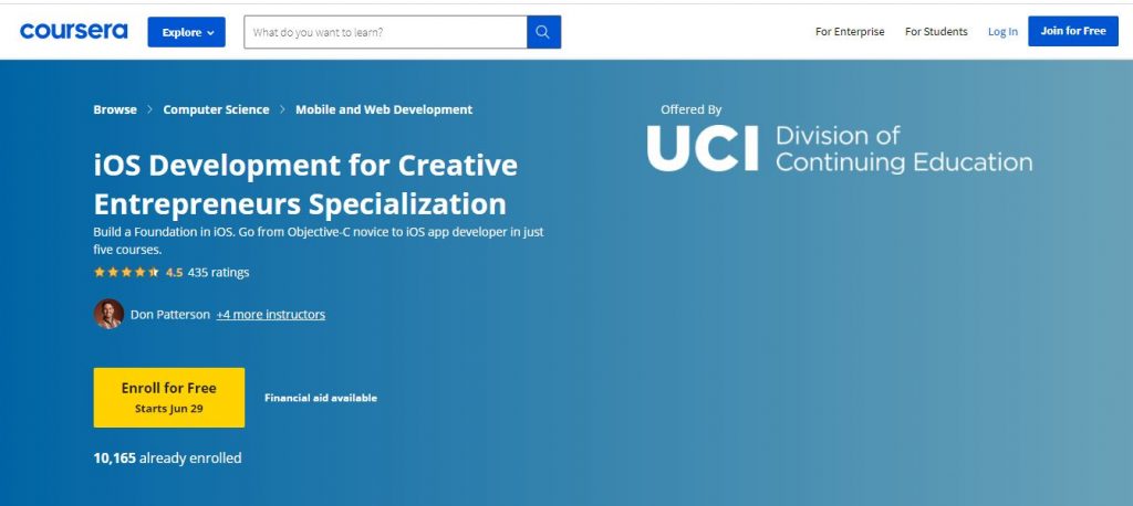 5. iOS Certification Course: App Development for Creative Entrepreneurs by Coursera