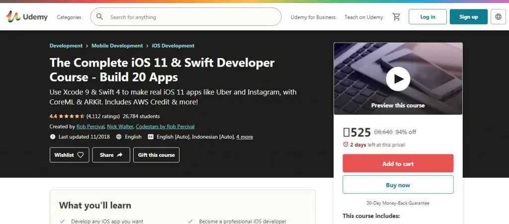 1. iOS 11 & Swift 4 – The Complete iOS App Development Bootcamp by Udemy