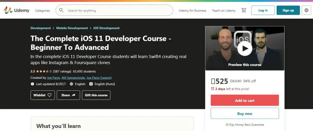 8. The Complete iOS 11 Developer Course – Beginner To Advanced by Udemy