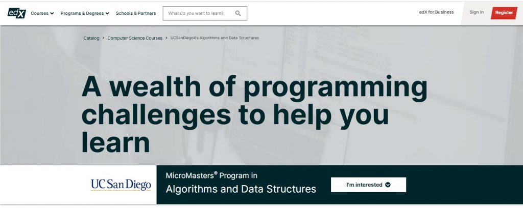 This eight-course algorithm and Data Structures program is offered on edX by the University of California, San Diego. It plans to help understudies ace the algorithmic programming strategies and find a new line of work. The focal point of this program is on learning through application, so course makers have put a very long time in planning more than 100 algorithm challenges. Students solve different computational problems by carrying out these algorithmic coding difficulties in a programming language of their choice. The MicroMasters program offers students accreditation for professional success at Rochester Institute of Technology (RIT) upon completing the Capstone Project’s seven courses. Additionally, suppose a student applies for admission to the RIT’s Master of Science in Professional Studies program as a feature of the university’s School of Individualized Study (SOIS). In that case, the edX MicroMasters program declaration will tally towards 25% of the coursework required for the M.S. degree at RIT.