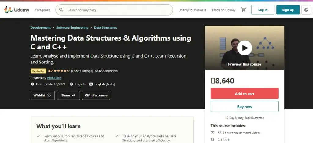 8. Mastering Data Structures and Algorithms using c and c++ by Udemy