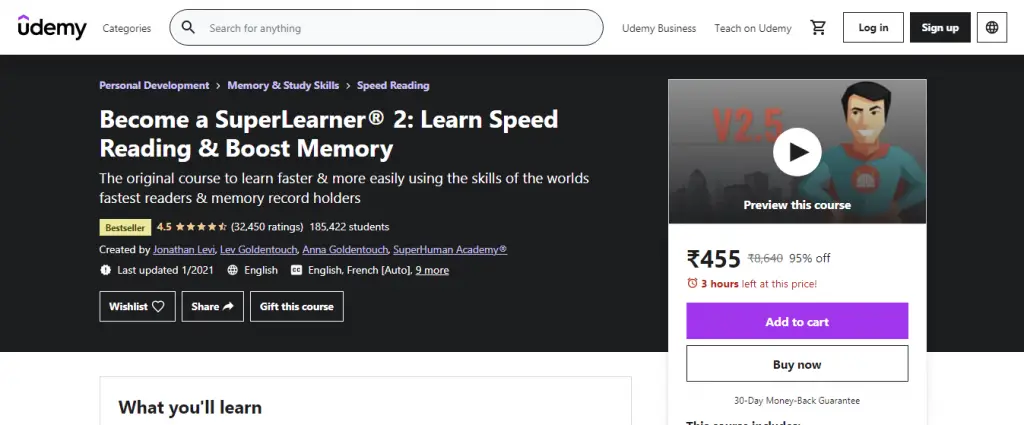 1. Become a SuperLearner® 2: Learn Speed Reading & Boost Memory by Udemy