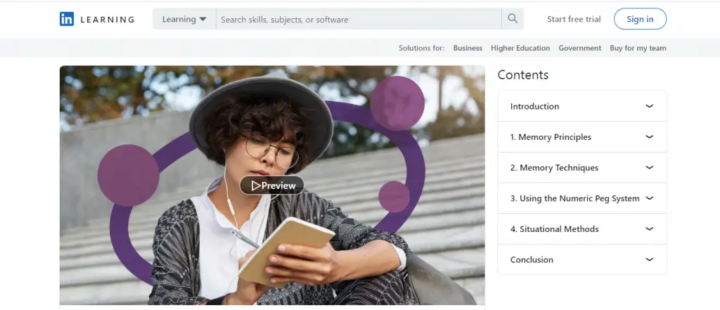 LinkedIn Learning’s Improving Your Memory course is another great option to gain some memorization skills. If you are facing problems remembering things, recalling events, or simply forgetting the lessons you learn, this course has been designed for learners of all ages to improve their memory.