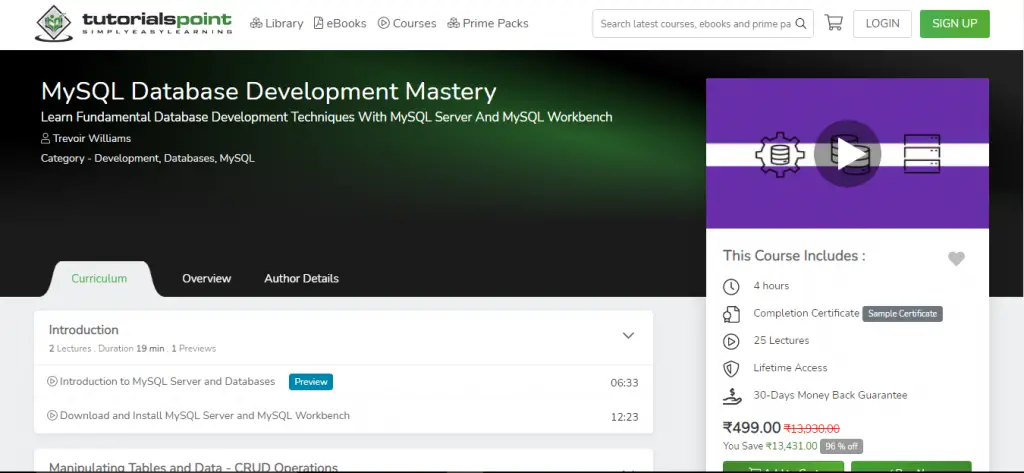 The course is itself termed as the conversion from zero to a hero. The basics of the development techniques for database development using MySQL Server and MySQL Workbench are intended through the program. There are basically no requirements needed prior to enrolling in the course. The basic concepts of Databases and Queries are the highlights of the course.