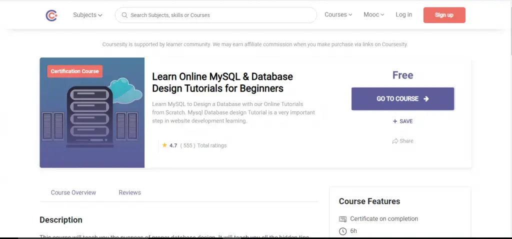 10. Learn Online MySQL & Database Design Tutorials for Beginners by Coursesity