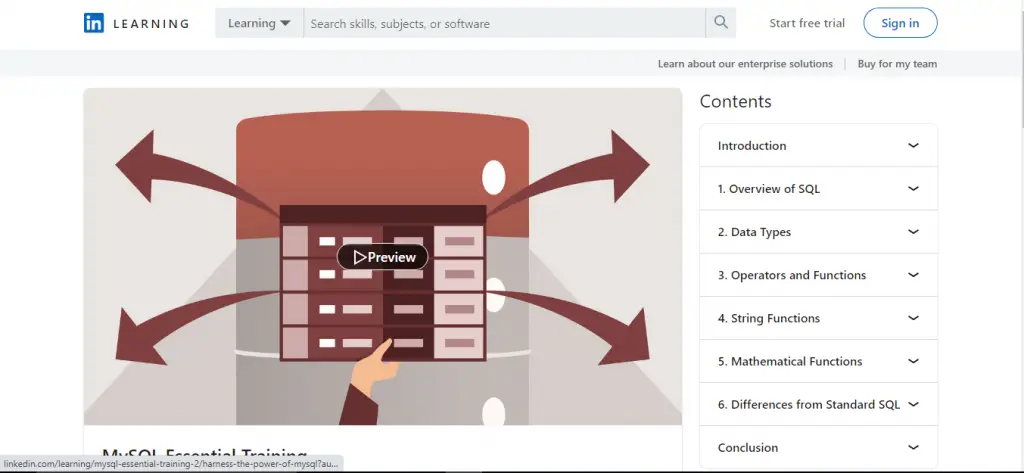 Courses to learn the basics and fundamentals of MySQL are offered via the online platform; have a look;