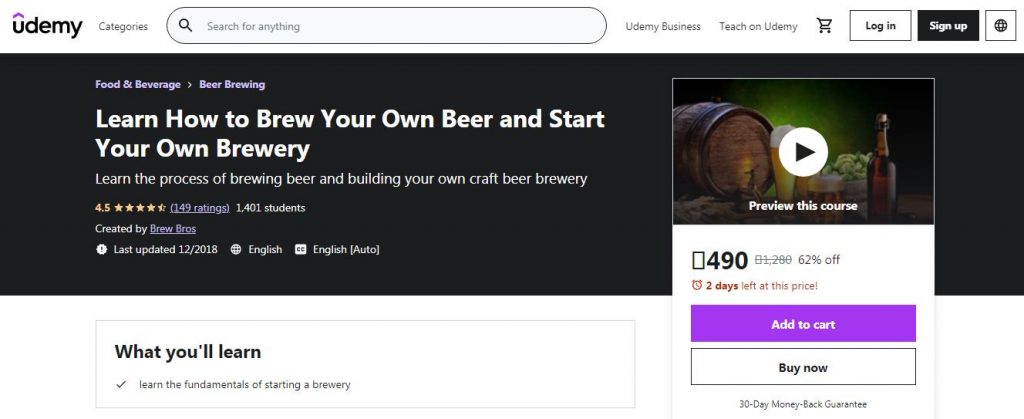 2. Learn How to Brew Your Own Beer and Start Your Own Brewery by Udemy