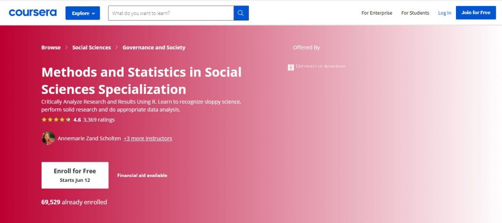 3. Methods and Statistics Course Online by University of Amsterdam (Coursera)