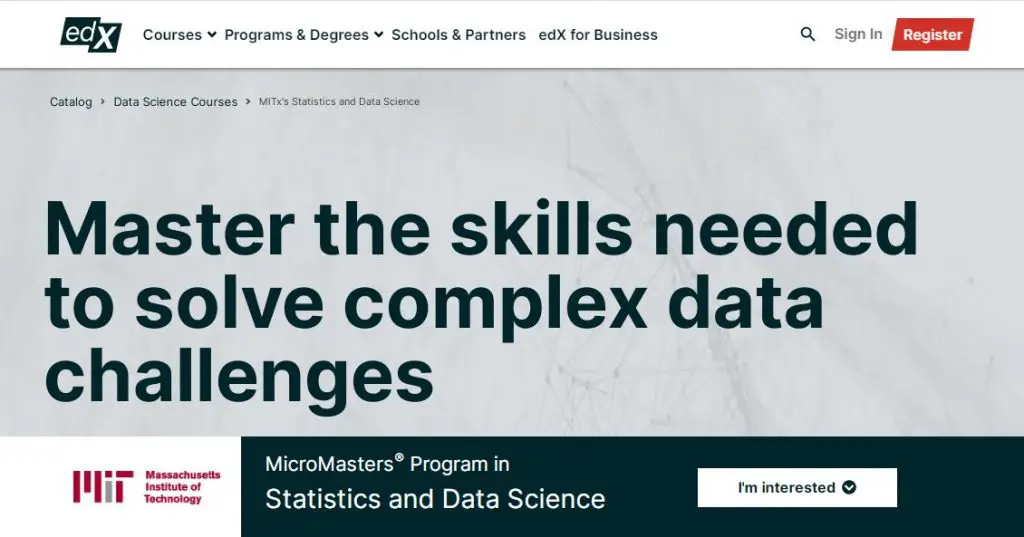 1. Statistics and Data Science MicroMaster’s Certification by MIT (edX)
