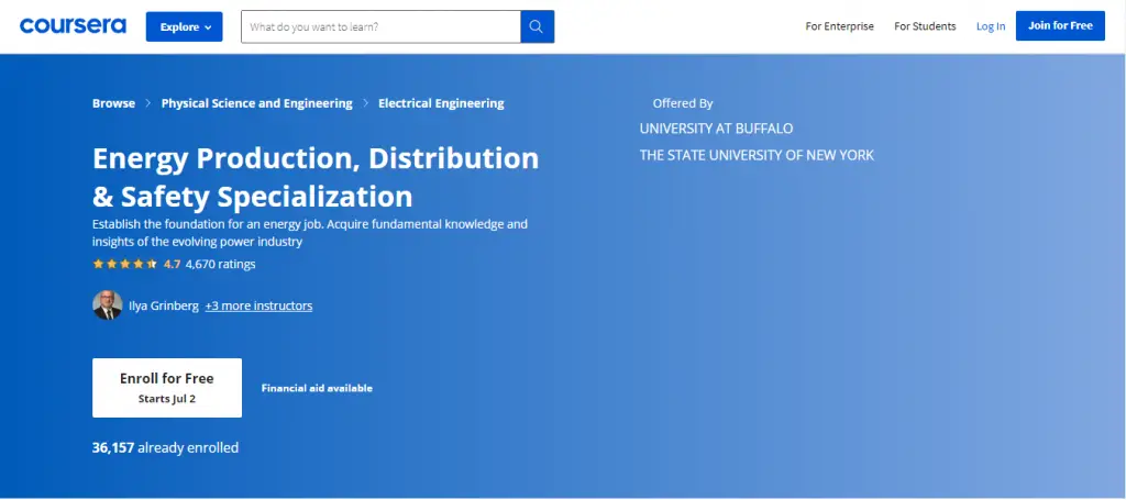 1. Energy Production, Distribution & Safety Specialization by University at Buffalo on Coursera