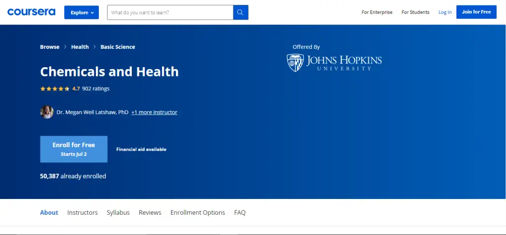5. Chemicals and Health by Johns Hopkins University on Coursera