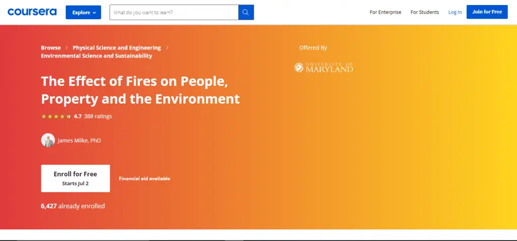6. The Effect of Fires on People, Property and the Environment by University of Maryland, College Park on Coursera