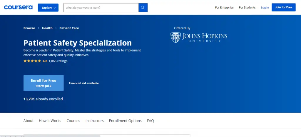 7. Patient Safety Specialization by Johns Hopkins University on Coursera
