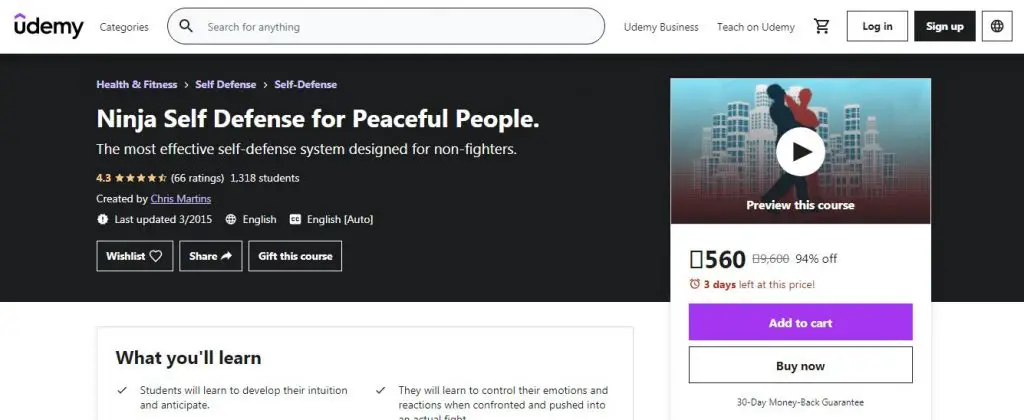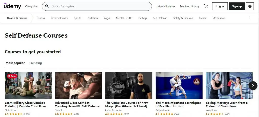 Udemy offers a progression of projects and training in self-defense starting from fundamental assurance against badgering to particular strategies. With these classes, you have the choice of procuring abilities, for example, inappropriate behavior anticipation for representatives, battle preparing, insider facts of Tai Chi, ace boxing, Brazilian Jiu-Jitsu to give some examples. You have the option of taking a short quiz on the site to discover appropriate courses for you. All the concepts will be taught from scratch and perfectly suitable for amateurs. You can anytime reach the instructors to clarify the doubts and solidify the basics. All the courses offered at Udemy are self-paced and you can complete them depending on your suitability.