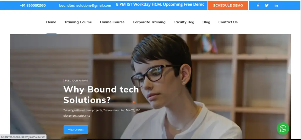 This training course is one of the best SharePoint training provided by Chennai Academy. The course trains the learner to manage content, design websites, and assessing devices for any online drive. The platform is an excellent choice that aids the users to organize the data and files in a number of ways. Companies can devise sites, craft and construct the sites and give the right level of authorizations and help the user to construct it as a control panel that shows information from multiple resources.
