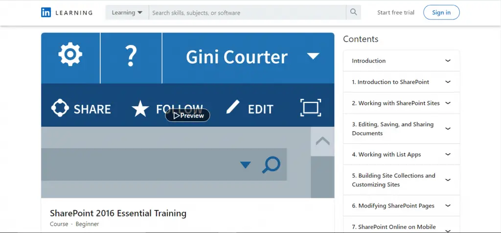 1. Sharepoint 2016 Essential Training on LinkedIn Learning