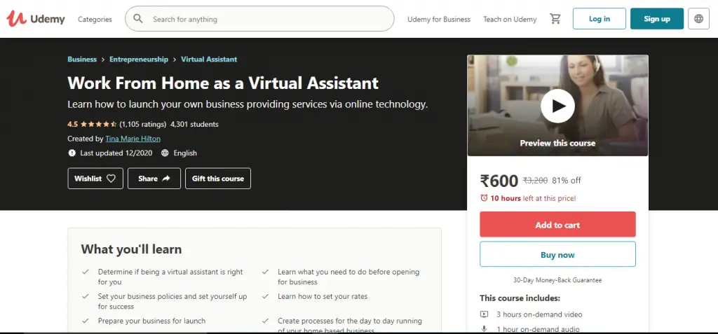 In this online program, Tina Marie, a virtual assistant industry specialist, will go through how to start a business from the ground up and how to develop protocols for the day-to-day operations of your home-based business. The course provides 3 hours of on-demand video, 1-hour on-demand audio,18 downloadable resources, and lifetime access to all the lessons, including updates. This course will offer you an advantage by providing procedures that have been proven to help you develop a successful virtual assistant business. This course is designed for people who want to create their own small business or work from home.