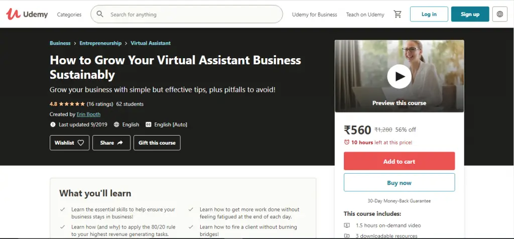 5. How to Grow Your Virtual Assistant Business Sustainably (Udemy)