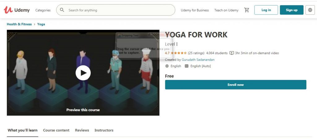 2. Yoga for Work Offered by Gurudath Sadanandan- Udemy