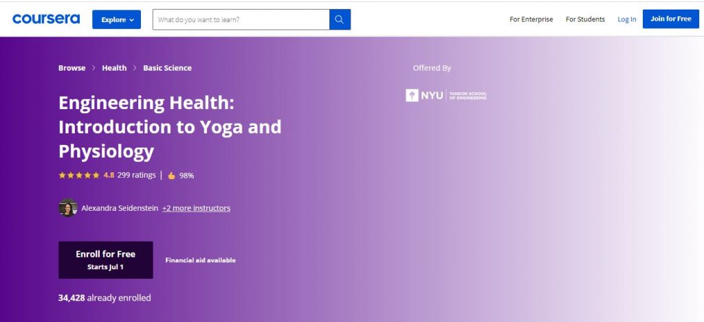 1. Engineering Health: Introduction to Yoga and Physiology by Coursera