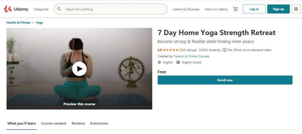 4. 7-Day Home Yoga Strength Retreat by Udemy