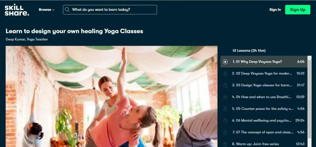 Deep Kumar, a yoga teacher, presents this educational session on how to build a yoga class that will benefit your students physically, mentally, and spiritually. He warns that planning a class without a thorough understanding of the foundations can be risky, and he strives to educate students on how to recognize the physiological and emotional significance of poses, as well as effective breathing methods. There are 12 lessons totaling three hours in length. To get the most out of the free yoga course, it is recommended that you do them in order. There is a theoretical element that includes a Malaysian recorder course, and the second portion of the course includes two full deep yoga classes.While this is a paid course on the Skillshare platform, beginners can take advantage of the site’s two-month free trial membership, which grants access to premium content. If you sign up for the trial, make sure to cancel it before the deadline passes so you don’t get charged.