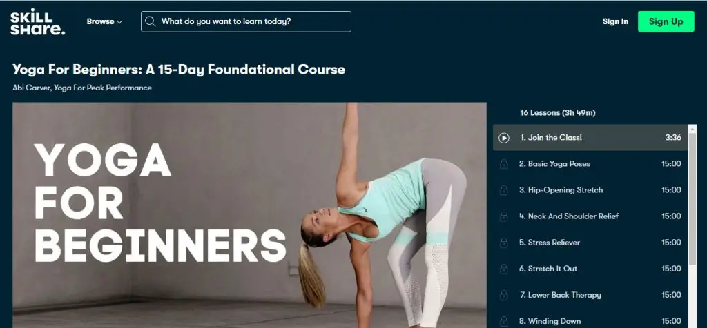 Abi Carter, a British yoga instructor, and creator of Yoga 15 lead this class. Carter is a soft-spoken instructor with a plethora of knowledge, as well as a personal trainer certified by the National Academy of Sports Medicine in Hatha, Power Yoga, and Zenthai Flow. She’s also a Yoga Alliance certified instructor. As you might expect from a non-spiritual practice built for performance and recuperation, Yoga 15 has a little less “wu” in it. Carter takes students through a series of rather in-depth 15-minute daily courses that are tailored for novices. The entire course is just over three hours long and was designed with the idea that everyone can practice yoga for fifteen minutes at a time. While it is said that this yoga course is for beginners, it is not stated that those beginners should have at least some level of fitness to feel successful in these lessons. Skillshare provides a two-month free trial of their platform, after which you must pay a monthly or annual membership cost. You would be able to take this course for free during the trial period.