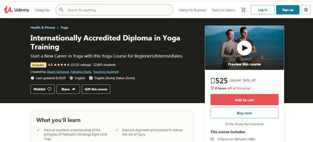 10. Internationally Accredited Diploma In Yoga Training by Udemy