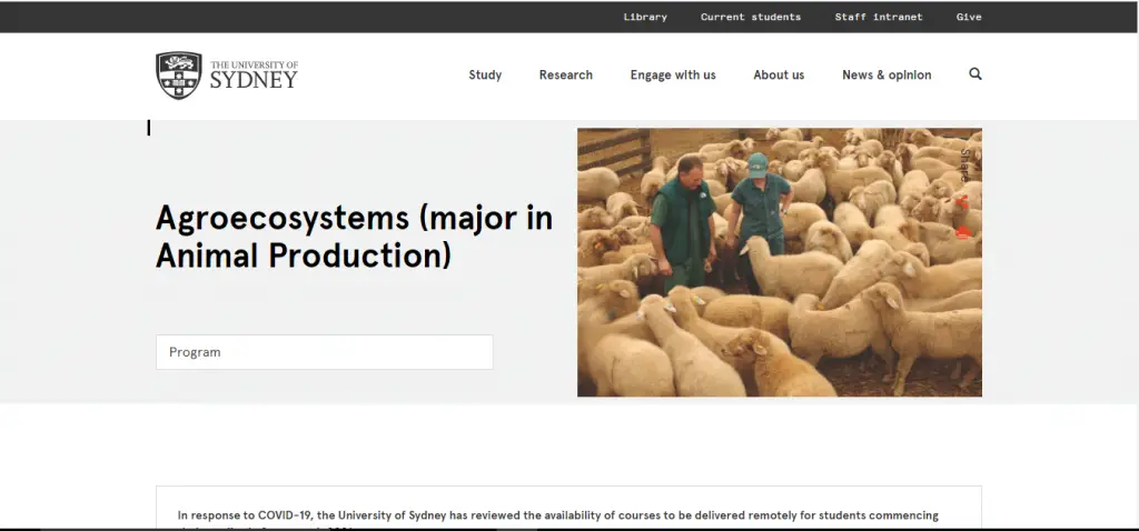 4. Agroecosystems (Major in Animal Production) by University of Sydney